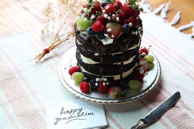 Was so delighted when I recevied a graudation cake from Patisserie Atelier! This is called a naked chocolate cake with fresh berries. I was so impressed when I saw the size of it. This deserves a round of a slow-mo clap.